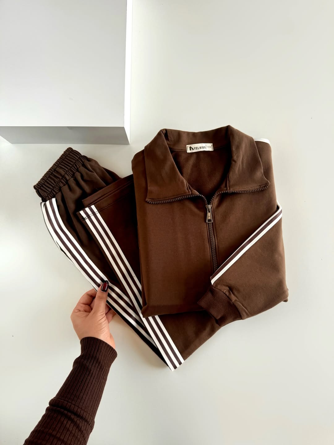 بلوز شلوار نواری قهوه ای حدودا 8 سال